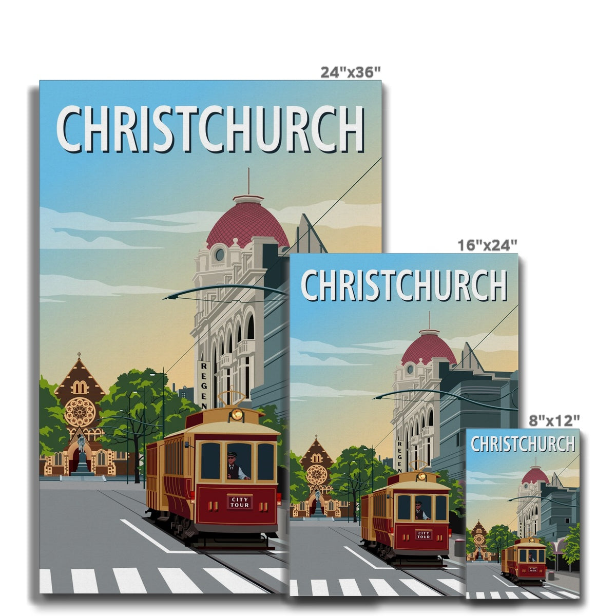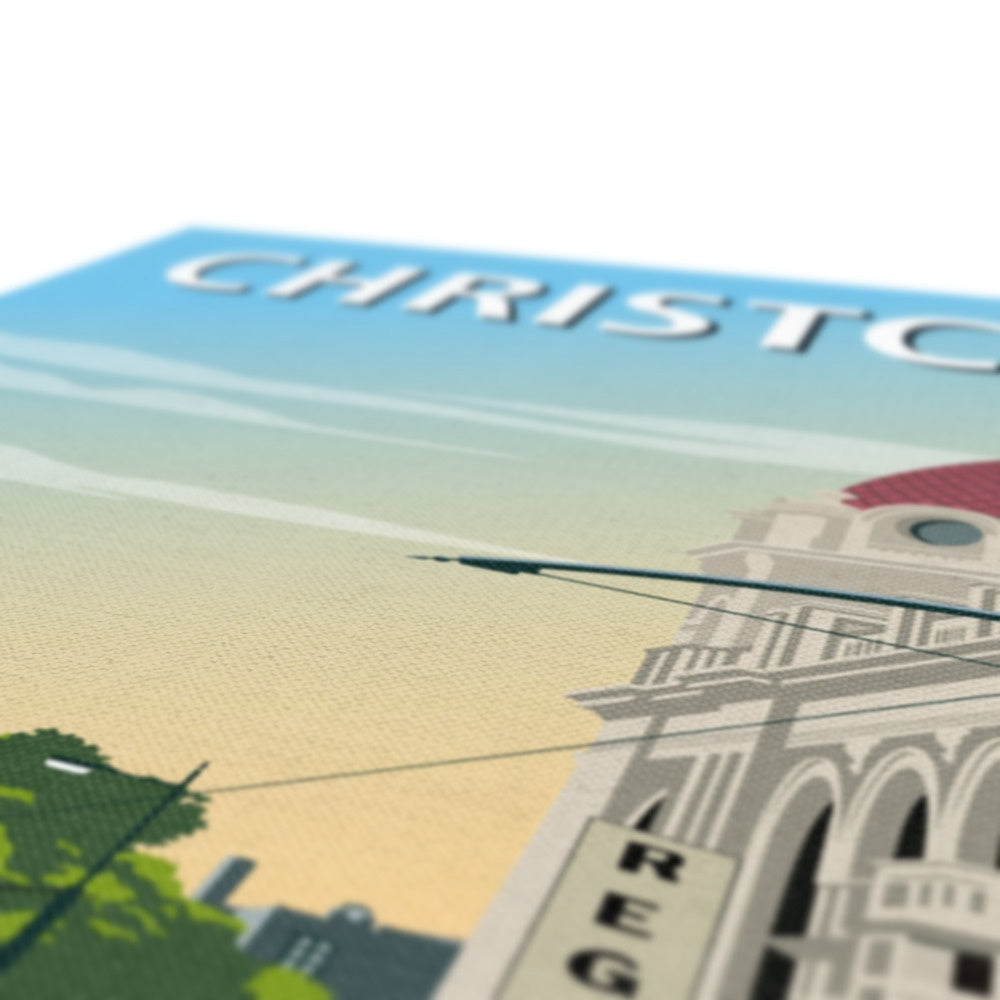 Discover the resilience and beauty of Christchurch, New Zealand with our striking canvas travel poster.